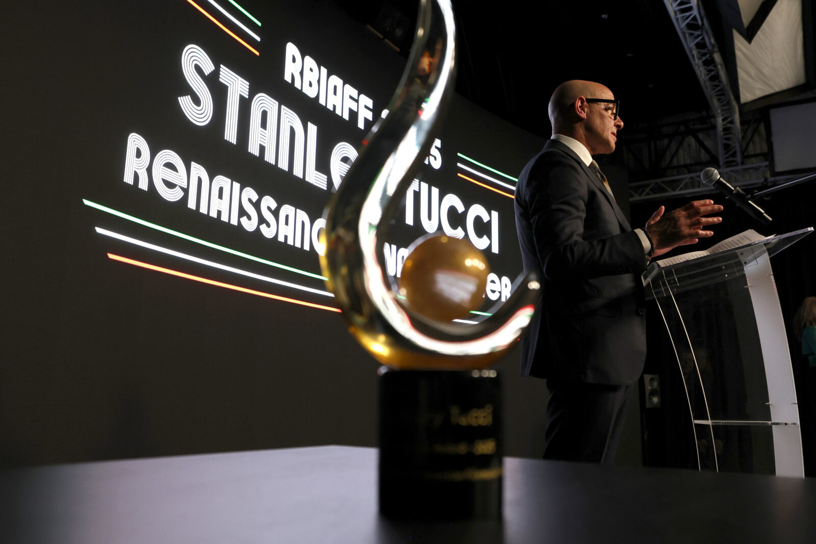 Before a crowd of L.A. luminaries and leaders of the Italian American community, Tucci held the Murano glass trophy and rose to the moment.