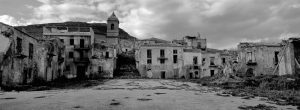 “In the school, only part destroyed, pupils’ scribblings are still on the chalkboard and a calendar on the wall marks the year: 1968. Outside, cobblestone streets lined with lavishly frescoed palazzos featuring decorated stone porches, majolica-tiled floors and Arab-style courtyards — once the homes of wealthy farmers and landowners — stand empty, save for a few stray dogs.”