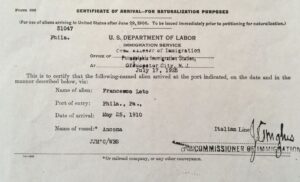 This was my journey…to find the roots of my paternal immigrant grandparents Francesco and Caterina Leto, who, like so many others, crossed the Atlantic and settled in Philadelphia. I know that many of us share and connect with this common history of our ancestors, and not only have I been able to find my roots, but now I’ll cherish and preserve them for generations to come.