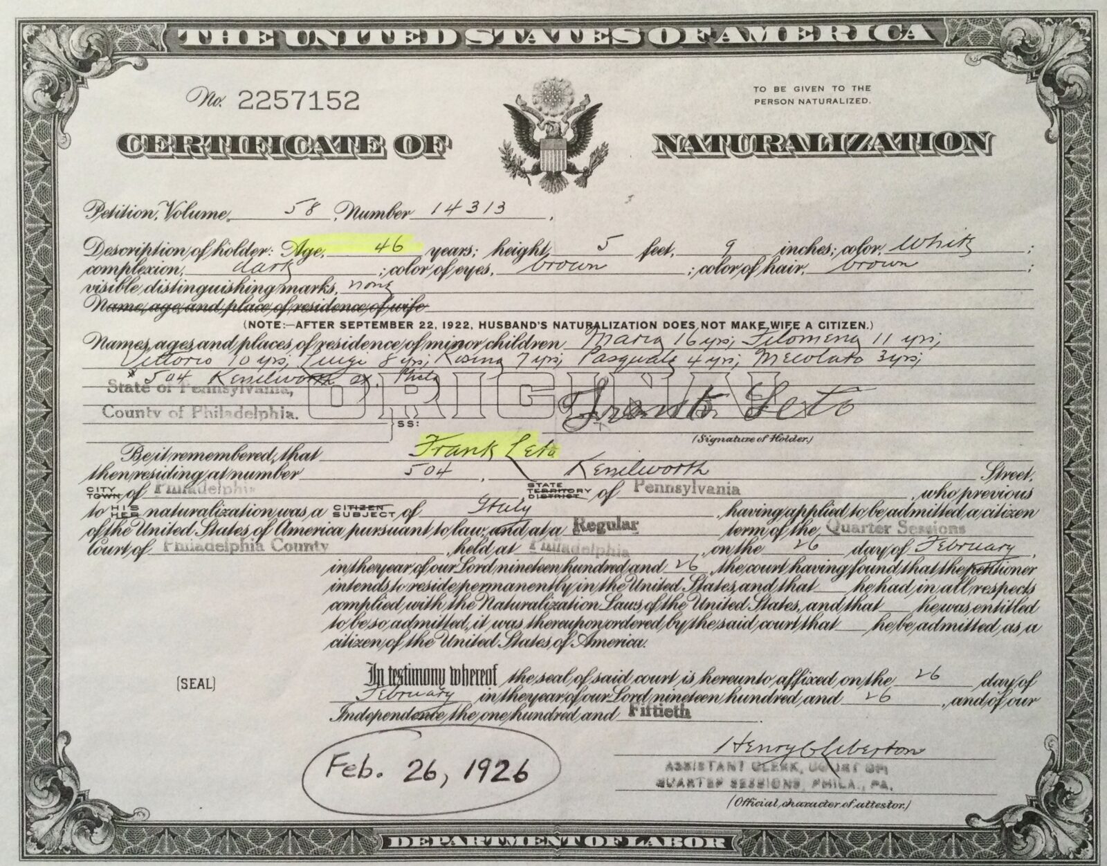 This was my journey…to find the roots of my paternal immigrant grandparents Francesco and Caterina Leto, who, like so many others, crossed the Atlantic and settled in Philadelphia. I know that many of us share and connect with this common history of our ancestors, and not only have I been able to find my roots, but now I’ll cherish and preserve them for generations to come.