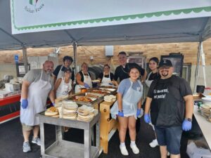 The Festa has long fought the temptation to hire vendors. All the food is made fresh daily by volunteers. Families of the parish school, Saint Ann Classical Academy, normally stepped up to help, as the feast was the school’s largest fundraiser. Unfortunately, enrollment was down after the pandemic so there was the question of volunteer participation. Also, critical kitchen items, like freezers, commercial refrigerators and the 40-gallon sauce vat colloquially known as “Vinnie the Vat,” needed to be replaced costing tens of thousands of dollars.