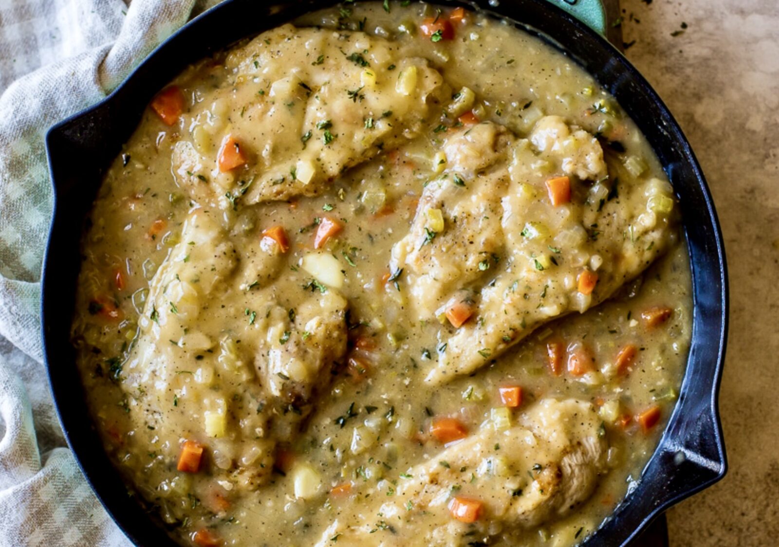 - We really enjoy this dish with a side of mashed potatoes and green beans. You’ll have a nice amount of gravy for your chicken as well as the potatoes.